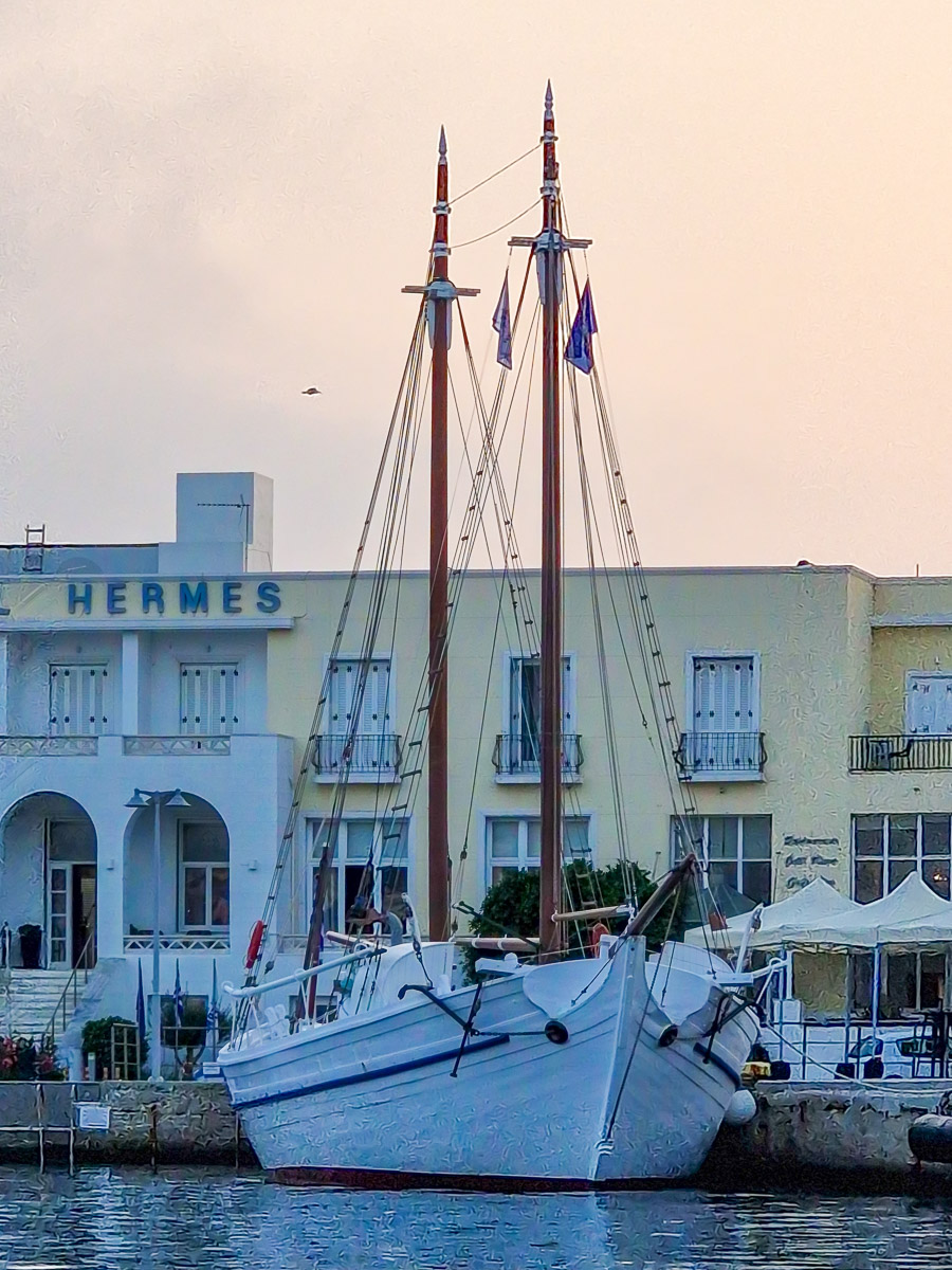 Το «Ευαγγελίστρια», ένα από τα τελευταία γνήσια αιγαιοπελαγίτικα φορτηγά ιστιοφόρα τύπου «πέραμα» ναυπηγήθηκε στη Σύρο το 1940 από τον ξακουστό καραβομαραγκό Μαυρίκο και τα παιδιά του, για λογαριασμό του Μυκονιάτη καραβοκύρη Αντώνη Κ. Μπόνη.