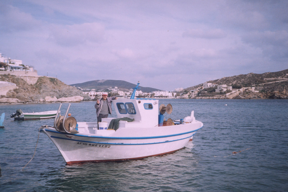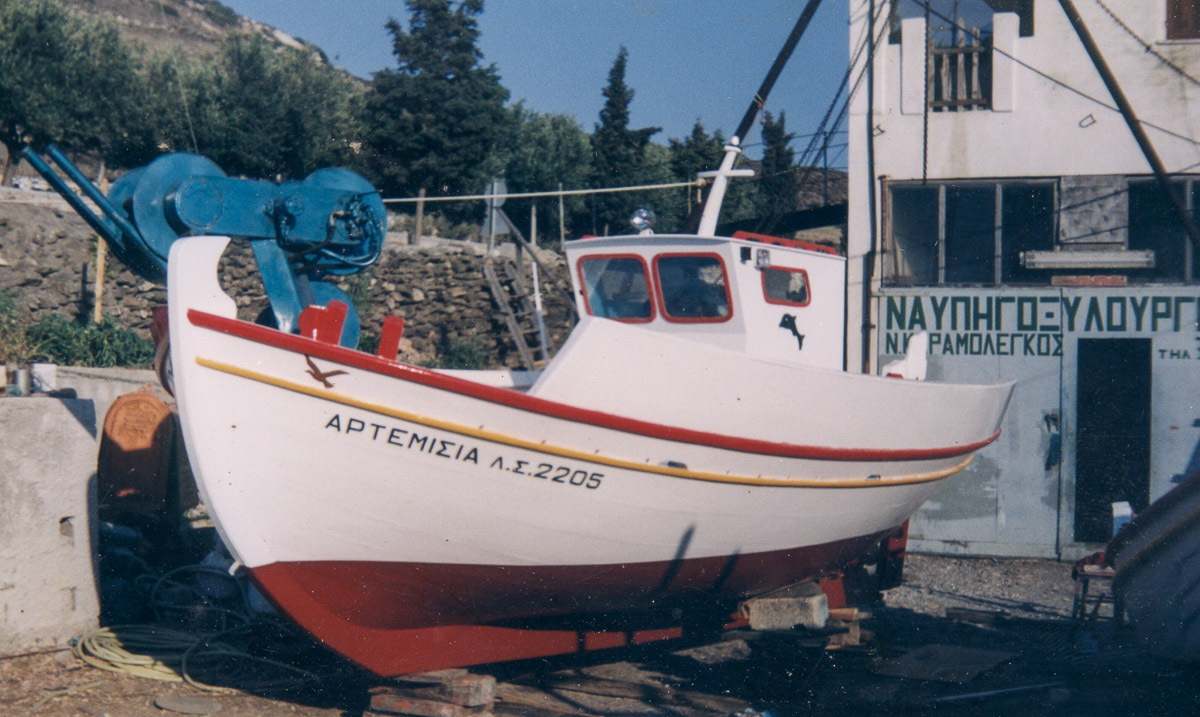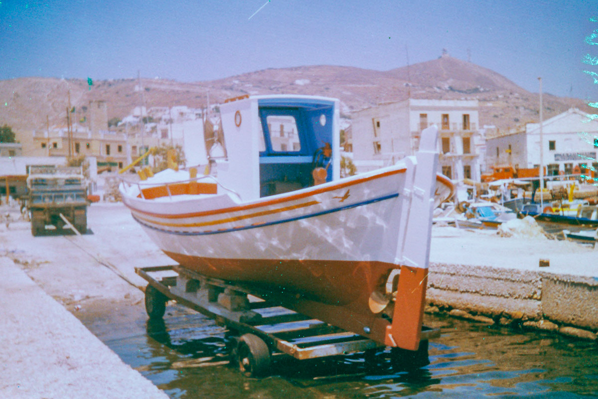 Τα σκάφη που ναυπηγούνται από τον Συριανό καραβομαραγκό, όλα με τη μέθοδο του χναριού, φέρουν έναν χαρακτηριστικό γλάρο στην πλώρη τους. Στην επιχείρηση συμμετέχει και η κόρη του.